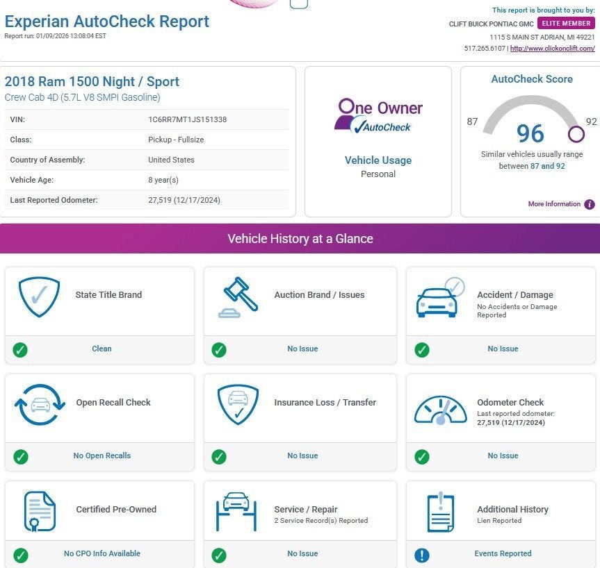 At Clift, all of our Vehicles Undergo Reconditioning to Make Sure that You are Getting a Quality Vehicle that You Deserve. This Includes Oil Change, Wash, Detail, and More. - You can Now Shop 24/7 Right from Your Home with Shop Click Drive. Pick up your Vehicle, Create your Deal, and Schedule your Delivery - Low Credit, Bad Credit, or No Credit to Buy a Vehicle? At Clift we Believe Everyone Deserves to purchase a vehicle, so We Offer Guaranteed Financing for Everyone. - We are a One Price Dealer! This means that we Keep our Prices as Low as Possible to Compete with other Dealerships. At Clift, you will find the Lowest Prices Possible. - We offer Free Delivery of your Newly Purchased Vehicle up to 25 Miles from our Dealership in Adrian, Michigan!