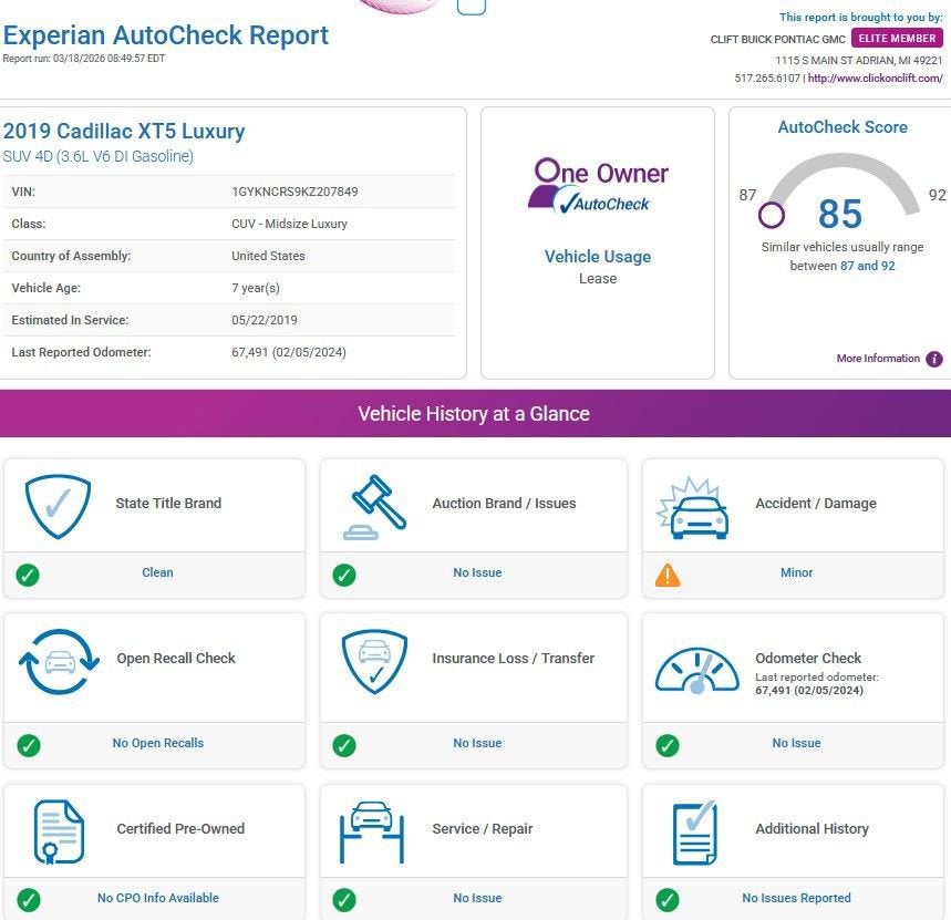 At Clift, all of our Vehicles Undergo Reconditioning to Make Sure that You are Getting a Quality Vehicle that You Deserve. This Includes Oil Change, Wash, Detail, and More. - You can Now Shop 24/7 Right from Your Home with Shop Click Drive. Pick up your Vehicle, Create your Deal, and Schedule your Delivery - Low Credit, Bad Credit, or No Credit to Buy a Vehicle? At Clift we Believe Everyone Deserves to purchase a vehicle, so We Offer Guaranteed Financing for Everyone. - We are a One Price Dealer! This means that we Keep our Prices as Low as Possible to Compete with other Dealerships. At Clift, you will find the Lowest Prices Possible. - We offer Free Delivery of your Newly Purchased Vehicle up to 25 Miles from our Dealership in Adrian, Michigan!
