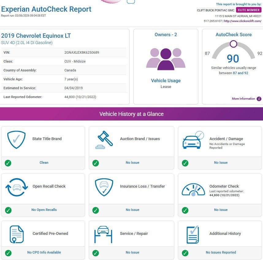 At Clift, all of our Vehicles Undergo Reconditioning to Make Sure that You are Getting a Quality Vehicle that You Deserve. This Includes Oil Change, Wash, Detail, and More. - You can Now Shop 24/7 Right from Your Home with Shop Click Drive. Pick up your Vehicle, Create your Deal, and Schedule your Delivery - Low Credit, Bad Credit, or No Credit to Buy a Vehicle? At Clift we Believe Everyone Deserves to purchase a vehicle, so We Offer Guaranteed Financing for Everyone. - We are a One Price Dealer! This means that we Keep our Prices as Low as Possible to Compete with other Dealerships. At Clift, you will find the Lowest Prices Possible. - We offer Free Delivery of your Newly Purchased Vehicle up to 25 Miles from our Dealership in Adrian, Michigan!