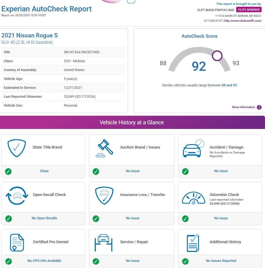 At Clift, all of our Vehicles Undergo Reconditioning to Make Sure that You are Getting a Quality Vehicle that You Deserve. This Includes Oil Change, Wash, Detail, and More. - You can Now Shop 24/7 Right from Your Home with Shop Click Drive. Pick up your Vehicle, Create your Deal, and Schedule your Delivery - Low Credit, Bad Credit, or No Credit to Buy a Vehicle? At Clift we Believe Everyone Deserves to purchase a vehicle, so We Offer Guaranteed Financing for Everyone. - We are a One Price Dealer! This means that we Keep our Prices as Low as Possible to Compete with other Dealerships. At Clift, you will find the Lowest Prices Possible. - We offer Free Delivery of your Newly Purchased Vehicle up to 25 Miles from our Dealership in Adrian, Michigan!
