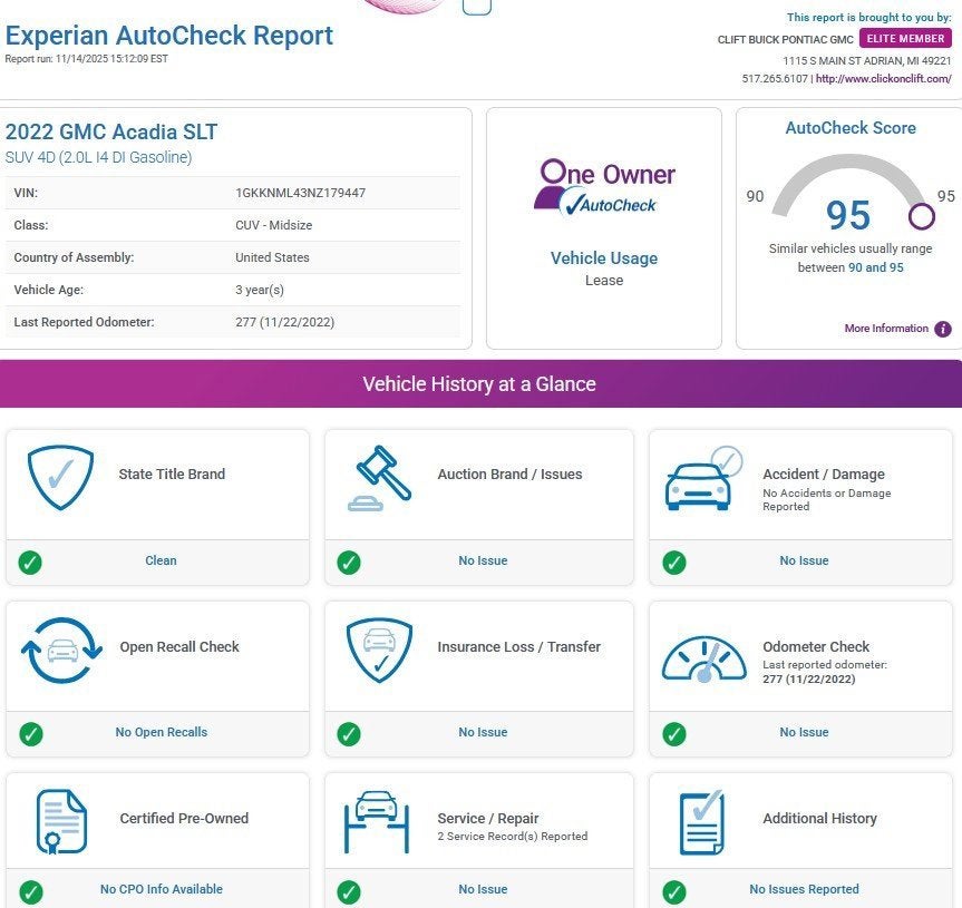 At Clift, all of our Vehicles Undergo Reconditioning to Make Sure that You are Getting a Quality Vehicle that You Deserve. This Includes Oil Change, Wash, Detail, and More. - You can Now Shop 24/7 Right from Your Home with Shop Click Drive. Pick up your Vehicle, Create your Deal, and Schedule your Delivery - Low Credit, Bad Credit, or No Credit to Buy a Vehicle? At Clift we Believe Everyone Deserves to purchase a vehicle, so We Offer Guaranteed Financing for Everyone. - We are a One Price Dealer! This means that we Keep our Prices as Low as Possible to Compete with other Dealerships. At Clift, you will find the Lowest Prices Possible. - We offer Free Delivery of your Newly Purchased Vehicle up to 25 Miles from our Dealership in Adrian, Michigan!