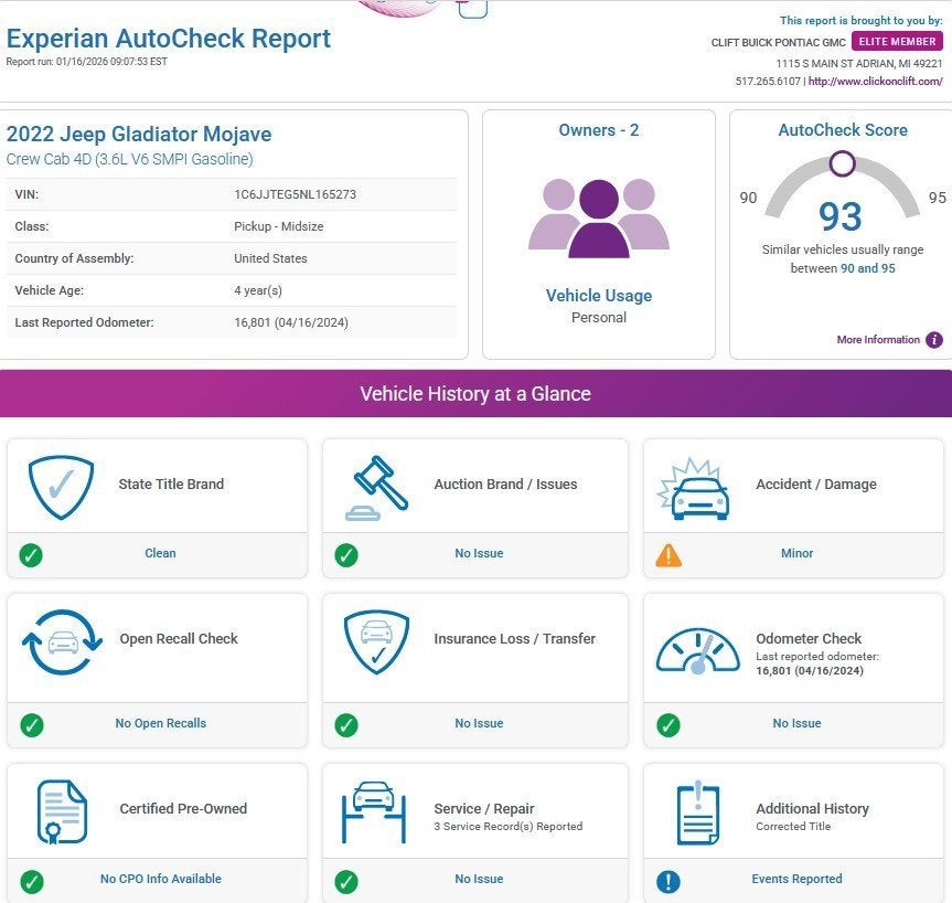 At Clift, all of our Vehicles Undergo Reconditioning to Make Sure that You are Getting a Quality Vehicle that You Deserve. This Includes Oil Change, Wash, Detail, and More. - You can Now Shop 24/7 Right from Your Home with Shop Click Drive. Pick up your Vehicle, Create your Deal, and Schedule your Delivery - Low Credit, Bad Credit, or No Credit to Buy a Vehicle? At Clift we Believe Everyone Deserves to purchase a vehicle, so We Offer Guaranteed Financing for Everyone. - We are a One Price Dealer! This means that we Keep our Prices as Low as Possible to Compete with other Dealerships. At Clift, you will find the Lowest Prices Possible. - We offer Free Delivery of your Newly Purchased Vehicle up to 25 Miles from our Dealership in Adrian, Michigan!