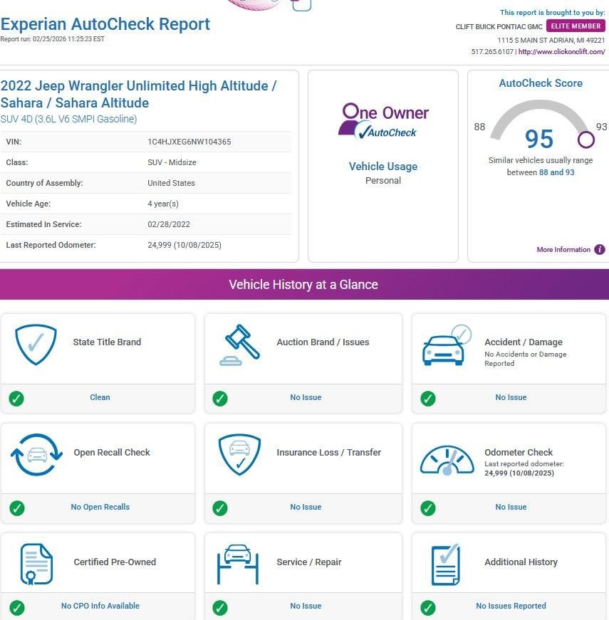 At Clift, all of our Vehicles Undergo Reconditioning to Make Sure that You are Getting a Quality Vehicle that You Deserve. This Includes Oil Change, Wash, Detail, and More. - You can Now Shop 24/7 Right from Your Home with Shop Click Drive. Pick up your Vehicle, Create your Deal, and Schedule your Delivery - Low Credit, Bad Credit, or No Credit to Buy a Vehicle? At Clift we Believe Everyone Deserves to purchase a vehicle, so We Offer Guaranteed Financing for Everyone. - We are a One Price Dealer! This means that we Keep our Prices as Low as Possible to Compete with other Dealerships. At Clift, you will find the Lowest Prices Possible. - We offer Free Delivery of your Newly Purchased Vehicle up to 25 Miles from our Dealership in Adrian, Michigan!
