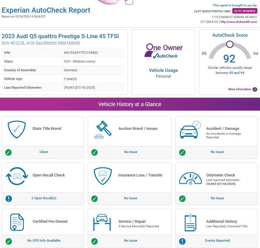 Recent Arrival! 2023 Q5 Audi 45 S line Prestige quattro Glacier White