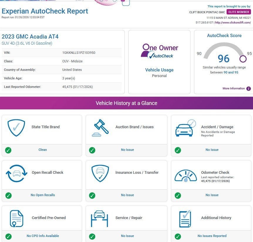 At Clift, all of our Vehicles Undergo Reconditioning to Make Sure that You are Getting a Quality Vehicle that You Deserve. This Includes Oil Change, Wash, Detail, and More. - You can Now Shop 24/7 Right from Your Home with Shop Click Drive. Pick up your Vehicle, Create your Deal, and Schedule your Delivery - Low Credit, Bad Credit, or No Credit to Buy a Vehicle? At Clift we Believe Everyone Deserves to purchase a vehicle, so We Offer Guaranteed Financing for Everyone. - We are a One Price Dealer! This means that we Keep our Prices as Low as Possible to Compete with other Dealerships. At Clift, you will find the Lowest Prices Possible. - We offer Free Delivery of your Newly Purchased Vehicle up to 25 Miles from our Dealership in Adrian, Michigan!