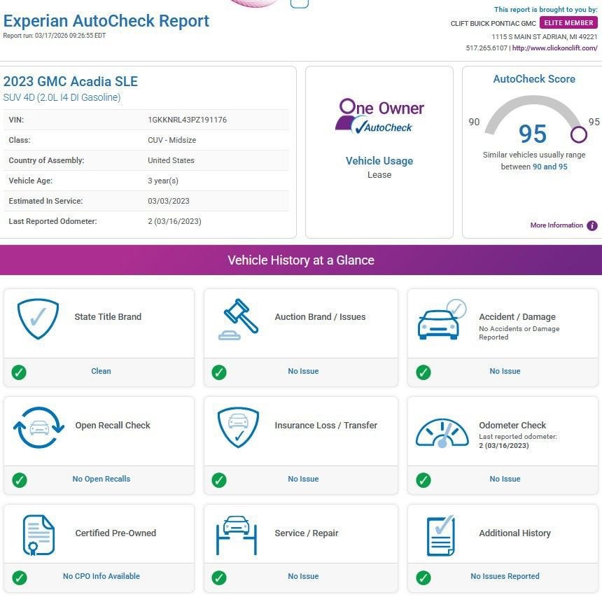 At Clift, all of our Vehicles Undergo Reconditioning to Make Sure that You are Getting a Quality Vehicle that You Deserve. This Includes Oil Change, Wash, Detail, and More. - You can Now Shop 24/7 Right from Your Home with Shop Click Drive. Pick up your Vehicle, Create your Deal, and Schedule your Delivery - Low Credit, Bad Credit, or No Credit to Buy a Vehicle? At Clift we Believe Everyone Deserves to purchase a vehicle, so We Offer Guaranteed Financing for Everyone. - We are a One Price Dealer! This means that we Keep our Prices as Low as Possible to Compete with other Dealerships. At Clift, you will find the Lowest Prices Possible. - We offer Free Delivery of your Newly Purchased Vehicle up to 25 Miles from our Dealership in Adrian, Michigan!