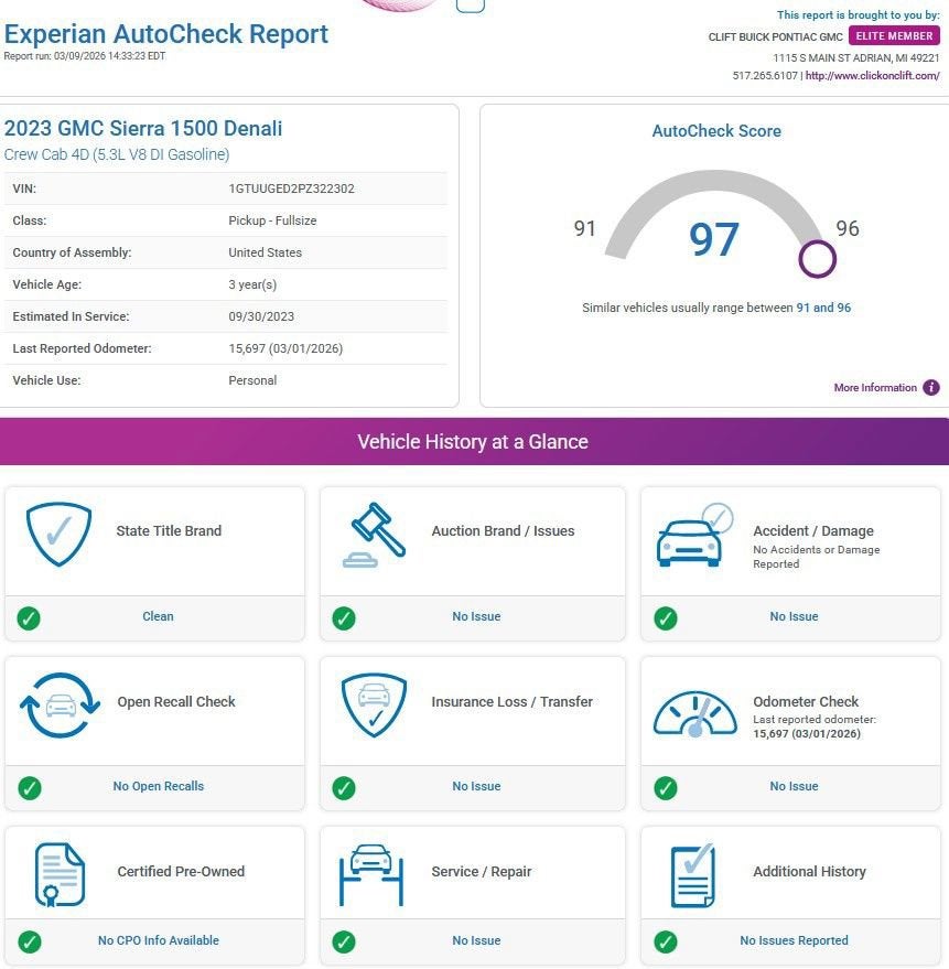 At Clift, all of our Vehicles Undergo Reconditioning to Make Sure that You are Getting a Quality Vehicle that You Deserve. This Includes Oil Change, Wash, Detail, and More. - You can Now Shop 24/7 Right from Your Home with Shop Click Drive. Pick up your Vehicle, Create your Deal, and Schedule your Delivery - Low Credit, Bad Credit, or No Credit to Buy a Vehicle? At Clift we Believe Everyone Deserves to purchase a vehicle, so We Offer Guaranteed Financing for Everyone. - We are a One Price Dealer! This means that we Keep our Prices as Low as Possible to Compete with other Dealerships. At Clift, you will find the Lowest Prices Possible. - We offer Free Delivery of your Newly Purchased Vehicle up to 25 Miles from our Dealership in Adrian, Michigan!