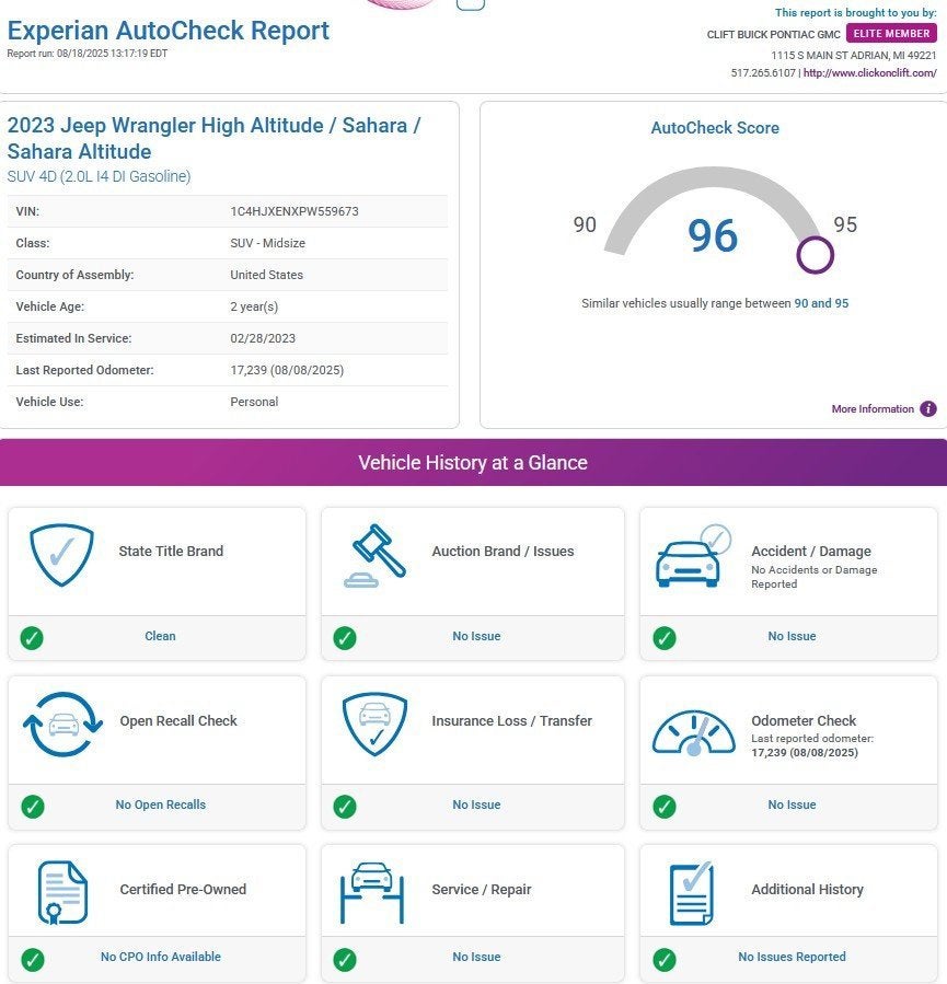At Clift, all of our Vehicles Undergo Reconditioning to Make Sure that You are Getting a Quality Vehicle that You Deserve. This Includes Oil Change, Wash, Detail, and More. - You can Now Shop 24/7 Right from Your Home with Shop Click Drive. Pick up your Vehicle, Create your Deal, and Schedule your Delivery - Low Credit, Bad Credit, or No Credit to Buy a Vehicle? At Clift we Believe Everyone Deserves to purchase a vehicle, so We Offer Guaranteed Financing for Everyone. - We are a One Price Dealer! This means that we Keep our Prices as Low as Possible to Compete with other Dealerships. At Clift, you will find the Lowest Prices Possible. - We offer Free Delivery of your Newly Purchased Vehicle up to 25 Miles from our Dealership in Adrian, Michigan!
