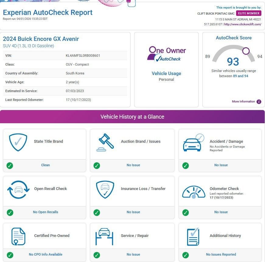 At Clift, all of our Vehicles Undergo Reconditioning to Make Sure that You are Getting a Quality Vehicle that You Deserve. This Includes Oil Change, Wash, Detail, and More. - You can Now Shop 24/7 Right from Your Home with Shop Click Drive. Pick up your Vehicle, Create your Deal, and Schedule your Delivery - Low Credit, Bad Credit, or No Credit to Buy a Vehicle? At Clift we Believe Everyone Deserves to purchase a vehicle, so We Offer Guaranteed Financing for Everyone. - We are a One Price Dealer! This means that we Keep our Prices as Low as Possible to Compete with other Dealerships. At Clift, you will find the Lowest Prices Possible. - We offer Free Delivery of your Newly Purchased Vehicle up to 25 Miles from our Dealership in Adrian, Michigan!