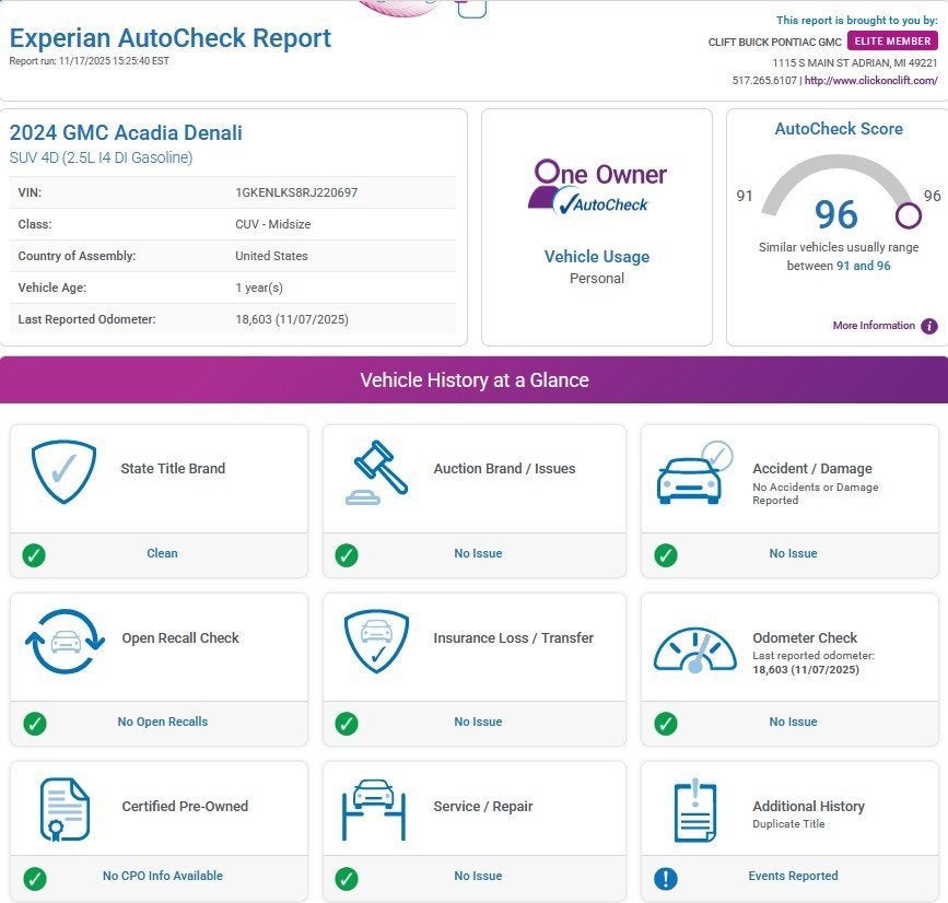 At Clift, all of our Vehicles Undergo Reconditioning to Make Sure that You are Getting a Quality Vehicle that You Deserve. This Includes Oil Change, Wash, Detail, and More. - You can Now Shop 24/7 Right from Your Home with Shop Click Drive. Pick up your Vehicle, Create your Deal, and Schedule your Delivery - Low Credit, Bad Credit, or No Credit to Buy a Vehicle? At Clift we Believe Everyone Deserves to purchase a vehicle, so We Offer Guaranteed Financing for Everyone. - We are a One Price Dealer! This means that we Keep our Prices as Low as Possible to Compete with other Dealerships. At Clift, you will find the Lowest Prices Possible. - We offer Free Delivery of your Newly Purchased Vehicle up to 25 Miles from our Dealership in Adrian, Michigan!
